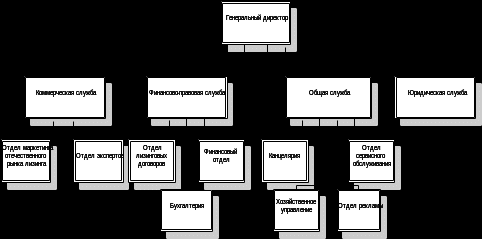 Общая служба в свою очередь подразделяется на 4 отдела: рекламы, канцелярии, сервисного обслуживания и хозяйственного управления.