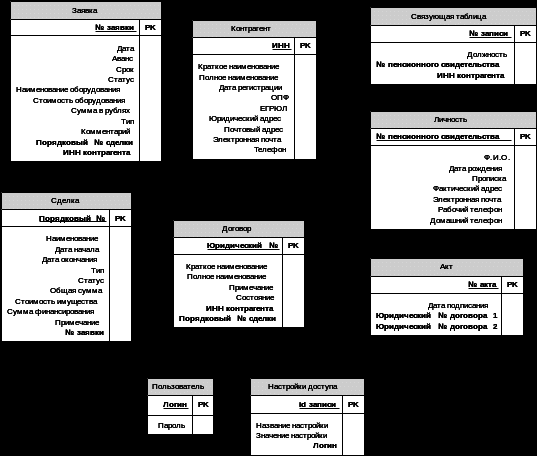 с сущностью "Заявка" она связана тем, что один контрагент может подать несколько заявок в лизинговую компанию;