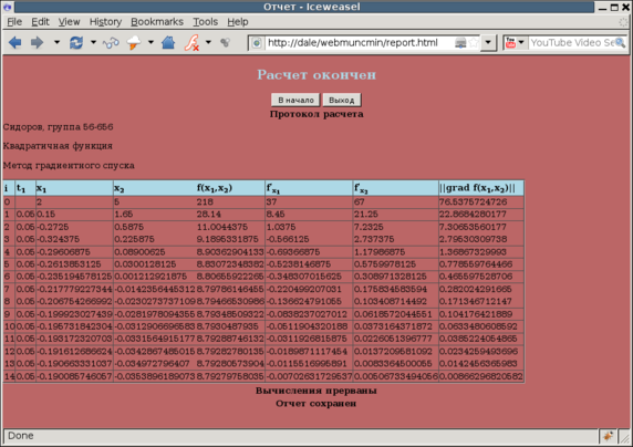 Протоколы успешно произведенных вычислений сохраняются на сервере и выводятся на экран по завершении расчетов (рис 2.17).