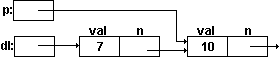 При связанном хранении в качестве элементов хранения используются структуры, связанные по одной из компонент в цепочку, на начало которой (первую структуру) указывает указатель dl. Структура образующая элемент хранения, должна кроме соответствующего элемента списка содержать и указатель на соседний элемент хранения.