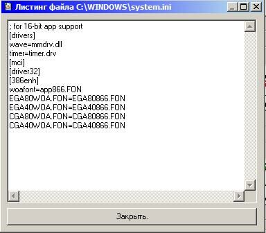 Фрейм с листинговыми модулями содержит пять кнопок для отображения листинга системных файлов boot.ini, system.ini, win.ini, autoexec.nt и config.nt, в данных файлах содержится системная информация загрузки и настроек операционной системы.