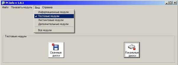 - Тестовые модули – тестирование отдельных модулей (логических и съемных дисков);