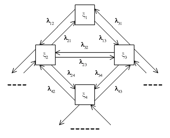 Итак, пусть имеется сложная (типа клиент – сервер) программная система S, состоящая из большого числа однородных модулей (потоков или клиентов) N, каждый из которых может случайным образом переходить из состояния в состояние. Пусть (для простоты) все потоки событий (в случае программы – это потоки внешних данных или запросов от клиентских программ к серверу), переводящие систему S и каждый ее модуль из состояния в состояние – пуассоновские (может быть даже с интенсивностями, зависящими от времени). Тогда процесс, протекающий в системе, будет марковским.