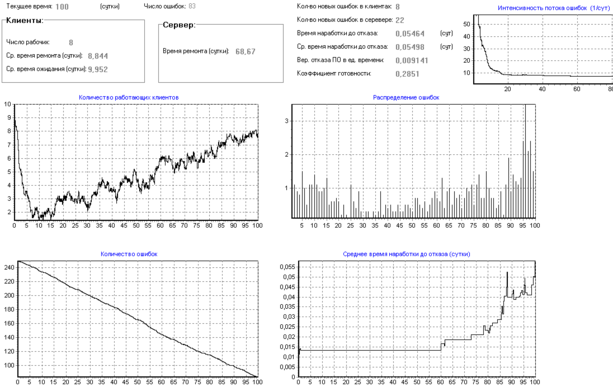 Рисунок 20 – Влияние количества клиентов на надежность ПО (100 клиентов)