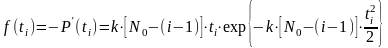 P(ti) = exp{– K[N0 – (i–1)] ti }.