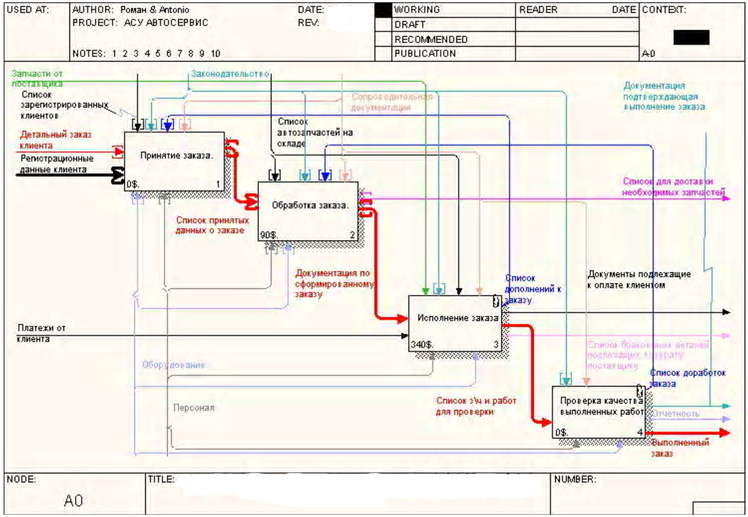 Стрелки управления (входят в верхнюю грань работы) - изображают правила и ограничения, согласно которым выполняется работа.