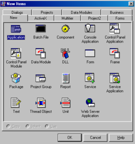 Cоздание программ в среде Delphi является удобным и простым делом. Для генерации программы первоначально необходимо создать файл проекта, имя которого будет совпадать с именем будущей программы. Причем Delphi сама сделает каркас программы – пользователю необходимо только выбрать соответствующий пункт в диалоговом окне New, которое показано на рис. 1: