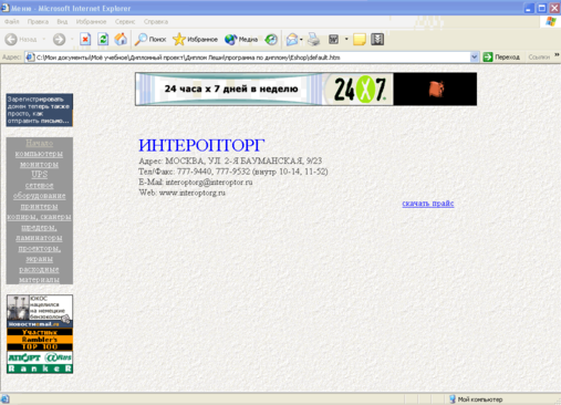 Inernet Explorer (IE) поставляется пользователям вместе с операционной системой Microsoft Windows 95/98/ME/2000, и для работы в IE необходимо иметь доступ в глобальную сеть Internet. Для просмотра электронных досок объявлений (страниц) необходимо ввести адрес нужной вам страницы в ячейку: "Address:" и нажать ENTER.