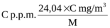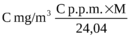 | $$Cp.p.m.=\frac{24,04\cdot Cmg/m^3}{M}$$ | |