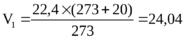 | $$V_1=\frac{22,4\cdot(273+20)}{273}=24,04$$ | |