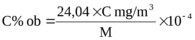 | $$C%ob=\frac{24,04\cdot Cmg/m^3}{M}\cdot10^{-4}$$ | |