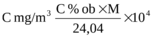 | $$C{mg/m^3}=\frac{C%ob\cdot M}{24,04}\cdot10^4$$ | |