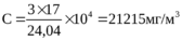 | $$C=\frac{3\cdot17}{24,04}\cdot10^4=21215$$ мг/м3 |