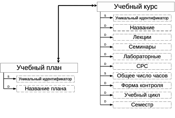 Рисунок 2.1.2.1 – Инфологическая модель модуля «Учебные планы»