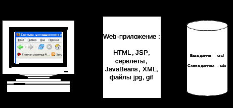 На рисунке 1.2.2.1 представлена схема, реализующая трехзвенную архитектуру, построенная на основе сервера приложений Apache-Tomcat 5.5.20 и сервера Oracle Database 10g.