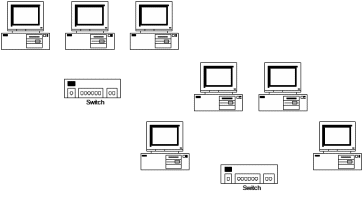 Технология Ethernet основана на методе множественного доступа к среде передачи с прослушиванием несущей и обнаружением коллизий — CSMA/CD. Суть этого метода применительно к «классической» версии Ethernet (10 Мбит/с на коаксиальном кабеле) и рассмотрим более поздние вариации. Возможная схема локальной сети показана на рисунке 1.1.