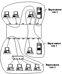 При создании виртуальных сетей на основе одного коммутатора обычно используется механизм группирования в виртуальные сети портов коммутатора