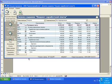 Данное бизнес-задание отражает запланированную заработную плату с отчислениями в соответствии со структурой бюджета как по предприятию в целом, так и по подразделениям (рис. 33).