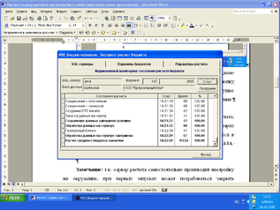 Расчет сводного расчета бюджета и экспорт расчетных итоговых данных в базу данных, размещенную на сервере базы данных осуществляем самостоятельное приложение – сервер расчета.