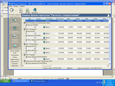 Составляем бизнес-прогноз «Расчеты с покупателями» (рис. 15). Данный бизнес-прогноз предназначен для определения взаимоотношений с контрагентами, связанных с реализацией продукции.