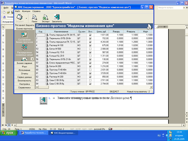 Составляем бизнес-прогноз «Индексы изменения цен» (рис. 14), предназначенный для формирования предполагаемых индексов их изменения. Для установления прогнозных цен: