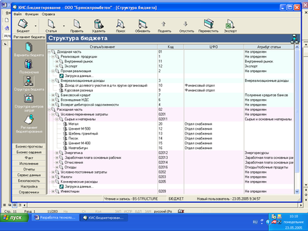 Составляем структуру бюджета (рис. 12) предназначенную для составления бюджетного классификатора, включающего в себя статьи и элементы. Для этого выполняем следующие операции: