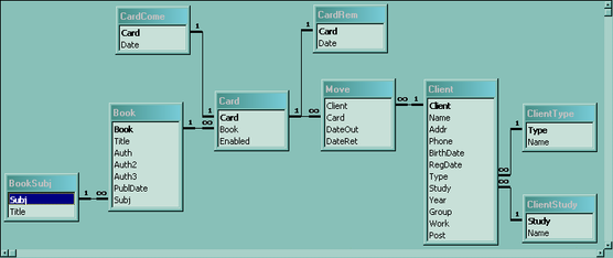 Книга - Картка (1 - 1..*);