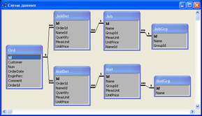 На основі моделі, представленої в пункті 1.2.4.1, проектується база даних в MS Access. Діаграма таблиць БД має наступний вигляд (див. рис. 1.6).