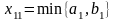 (розташованій у північно-західному кутку транспортної таблиці) максимальне значення, що допускається обмеженнями на попит і обсяг виробництва: