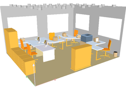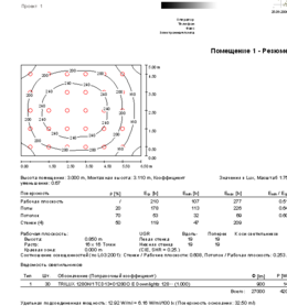 Як бачимо освітленість робочої площини роботи програміста робочого місця складає 210 люкс. Згідно побудованої моделі вона знаходиться в діапазоні 180 – 260 люкс. Освітленість повинна складати 200-400 люкс. Як бачимо, фактична освітленість відповідає роботі з крупними об’єктами але не відповідає нормам роботи з дрібними об’єктами та текстом.