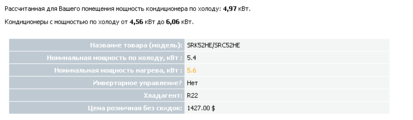 Необхідна потужність кондиціонера для даного приміщення 4,97 кВт (кондиціонер Mitsubishi Heavy SRK50HE-S1 )
