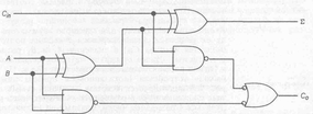 Рис. 7.5.4. Логічна схема повного суматора з використанням виключного АБО та І-НЕ