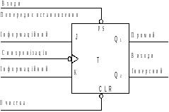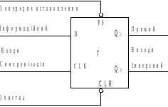 Умовне графічне позначення JK-тригера, що входить до складу інтегральної схеми показано на рис. 7.1.10. В порівнянні з тригером на рис. 7.1.9 даний тригер має два додаткових асинхронних входи (вхід попереднього встановлення і вхід очищення).