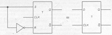 D-тригер можливо отримати з тактуємого RS-тригеру, додаючи до останнього інвертор, як показано на рис. 7.1.7.