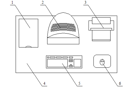 1 – сканер, 2 – монитор, 3 – принтер, 4 – поверхность рабочего стола,