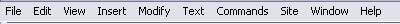 Стандартное раскрывающееся меню (File, Edit, View, Insert, Modify, Text, Commands, Site, Window, Help) (рис.3);