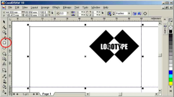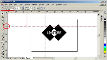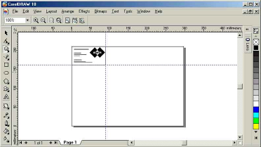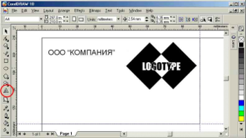 В левом верхнем углу у нас образовалась прямоугольная область, в которую мы должны «вписать» нашу визитку. Уменьшим логотип до приемлемых размеров и переместим его.