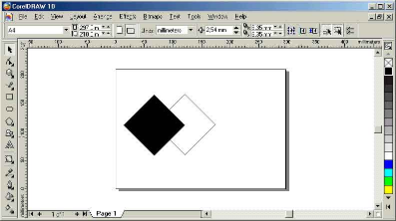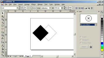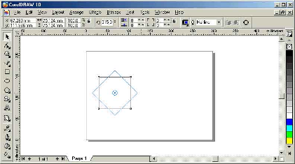 Вернем квадрат в исходное положение. (Меню «Edit» – «Undo».) Такой способ поворота подходит в том случае, когда не надо быть точными. Если надо сделать поворот на заданный угол, то можно воспользоваться иным способом. Выделяем объект и вносим значение угла поворота (45) в специальное поле в дополнительных инструментах.