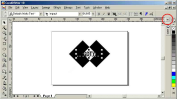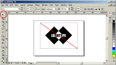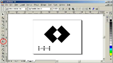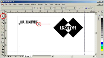 Закроем окно эффекта. Сейчас у нас логотип состоит из трех объектов – две графические фигуры и текст. Давайте объединим их в одну группу, чтобы в дальнейшем нам было удобно с ними работать. Берем инструмент «Pick Tool» и выделяем все объекты.