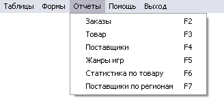 | Жанры игр | вызывает отчет "Жанры игр" | |