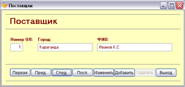 Рисунок 9 Форма "Поставщик"