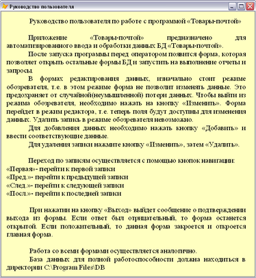 Форма "Руководство пользователя" предоставляет подробную информацию по работе с данной программой (Рисунок 11).