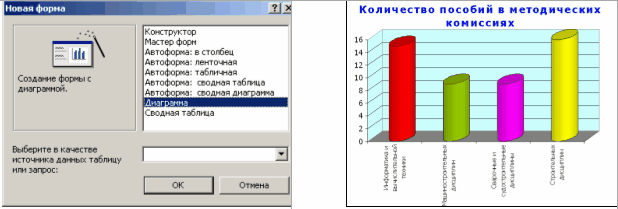 .создание формы – диаграммы удобно выполнять, используя в качестве источника данных данные запросов, таблиц.