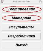 Обучающая часть программы состоит из раздела “материал” и частично из раздела “тестирование”.