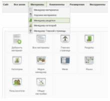 Перший спосіб: можна натиснути на головній сторінці панелі кнопку «Менеджер категорий», або в основному меню виберіть "Вміст", потім пункт «Менеджер разделов». Буде відкрита сторінка «Менеджер категорий».