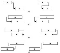 На этом рисунке прямоугольником изображена длительность работы. Левая сторона прямоугольника соответствует началу работы, а правая – окончанию. Взаимное расположение сторон, связанных стрелками, характеризует зависимость между началом и окончанием работ.