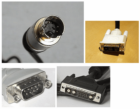 Выводы карты — видеоадаптеры MDA, Hercules, CGA и EGA оснащались 9-контактным разьемом типа D-Sub. Изредка также присутствовал коаксиальный разьем Composite Video, позволяющий вывести черно-белое изображение на телевизионный приемник или монитор, оснащенный НЧ-видеовходом. Видеоадаптеры VGA и более поздние обычно имели всего один разъём VGA (15-контактный D-Sub). Изредка ранние версии VGA-адаптеров имели также разьем предыдущего поколения (9-контактный) для совместимости со старыми мониторами. Выбор рабочего выхода задавался переключателями на плате видеоадаптера. В настоящее время платы оснащают разъёмами DVI или HDMI, либо Display Port в количестве от одного до трех. Некоторые видеокарты ATi последнего поколения оснащаются шестью видеовыходами. Порты DVI и HDMI являются эволюционными стадиями развития стандарта передачи видеосигнала, поэтому для соединения устройств с этими типами портов возможно использование переходников. Порт DVI бывает двух разновидностей. DVI-I также включает аналоговые сигналы, позволяющие подключить монитор через переходник на разьем D-SUB. DVI-D не позволяет этого сделать. Dispay Port позволяет подключать до четырёх устройств, в том числе акустические системы, USB-концентраторы и иные устройства ввода-вывода. На видеокарте также возможно размещение композитных и S-Video видеовыходов и видеовходов (обозначаются, как ViVo) (Рис. 1.2).