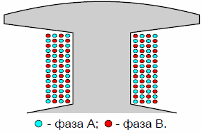 ХИС HG типа UF1301 управляет состоянием транзисторов Q1, Q2. Транзисторы работают в ключевом режиме и состояние их всегда противоположно. Поэтому ток протекает через обе фазы обмотки статора поочередно, т.к. эти фазы подключены к коллекторам Q1, Q2. Обмотка статора состоит из четырех катушек, при этом обмотки первой и второй фаз наматываются совместно таким образом, как это показано на рис. 2.14. Магнитные полярности этих обмоток у каждого из полюсов двигателя противоположны друг другу. Такой тип обмотки называют бифилярной обмоткой. Это позволяет запитывать обе обмотки напряжением одной полярности.