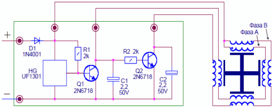 Рисунок 2.13 - Принципиальная электрическая схема двухфазового вентильного двигателя SU8025-M (SUPERULTRA, TAIWAN)
