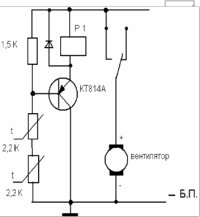 Для того, чтобы оградить БП от перегрева разработаем простейшую схему включения вентилятора (Рисунок 2.5).